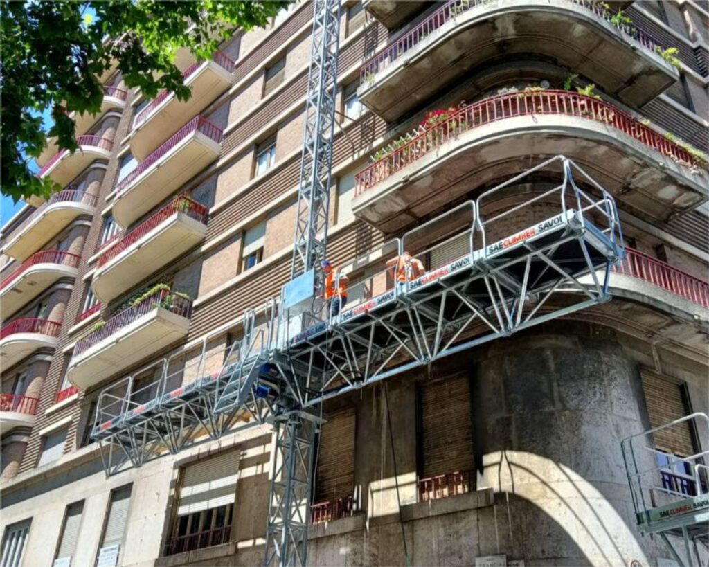 Plattformen är designad för tunga fasadmaterial, murning och monteringsuppgifter.